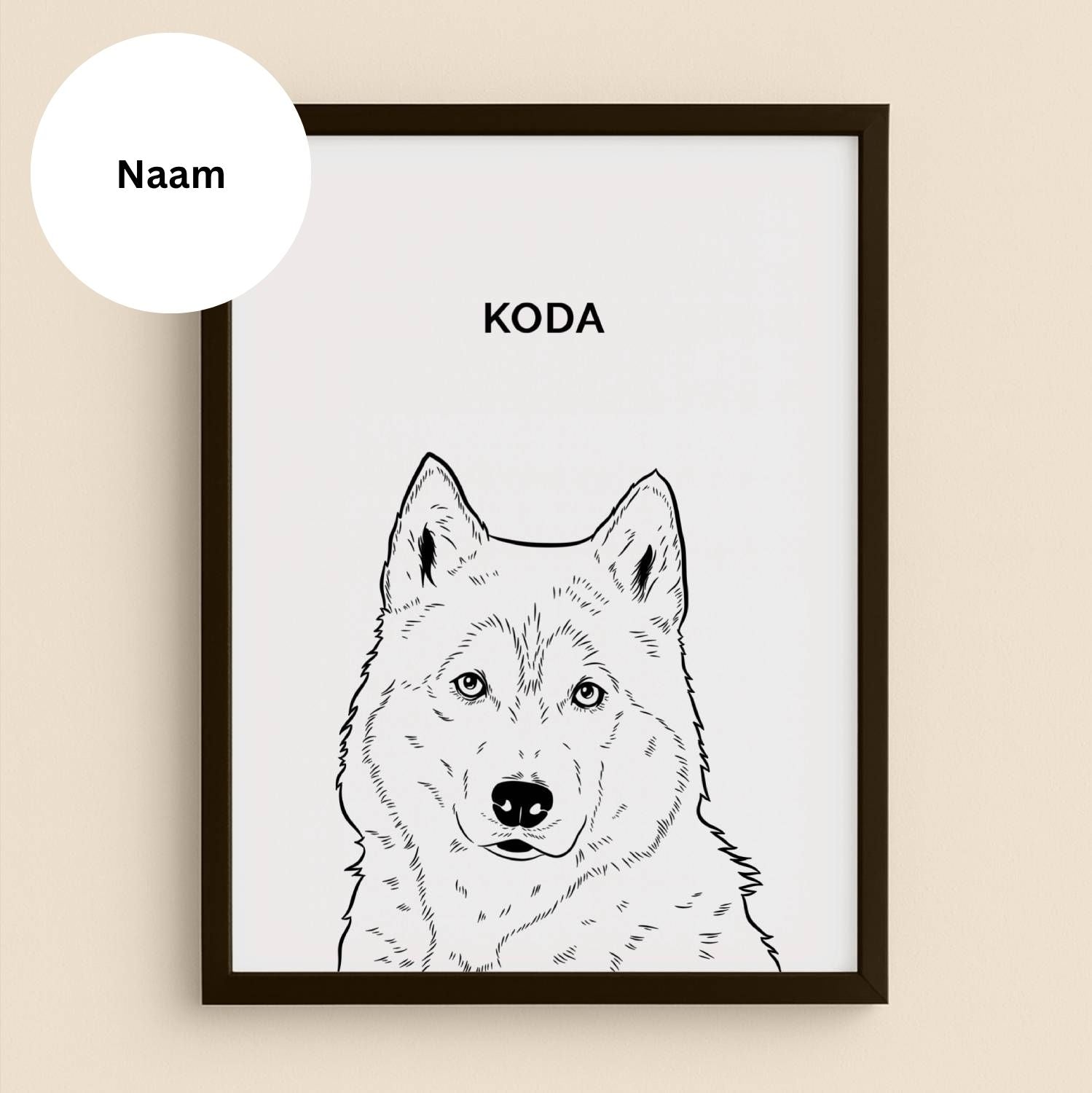 Een stijlvol, minimalistisch portret van jouw huisdier – strak, modern en vol betekenis.