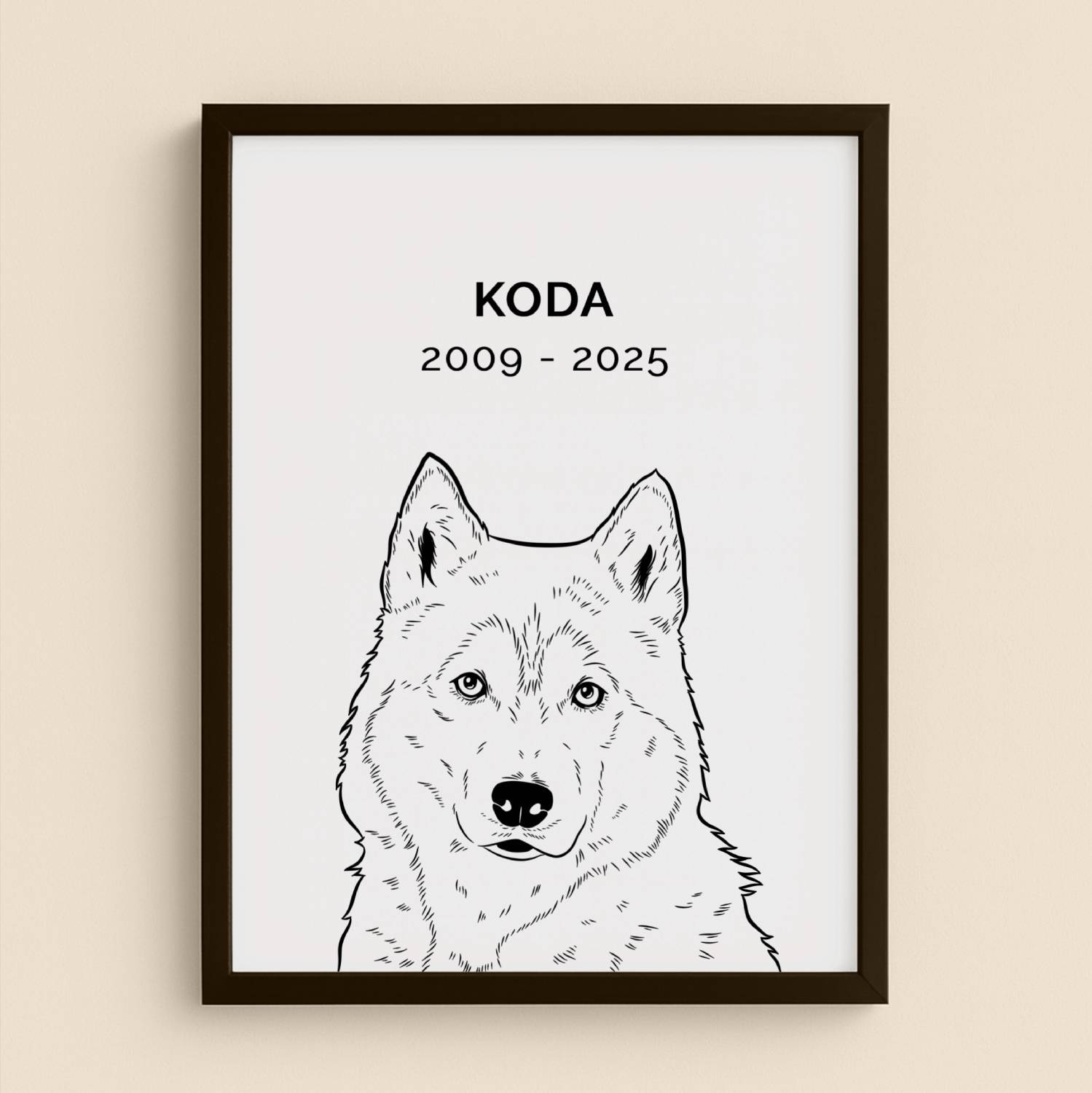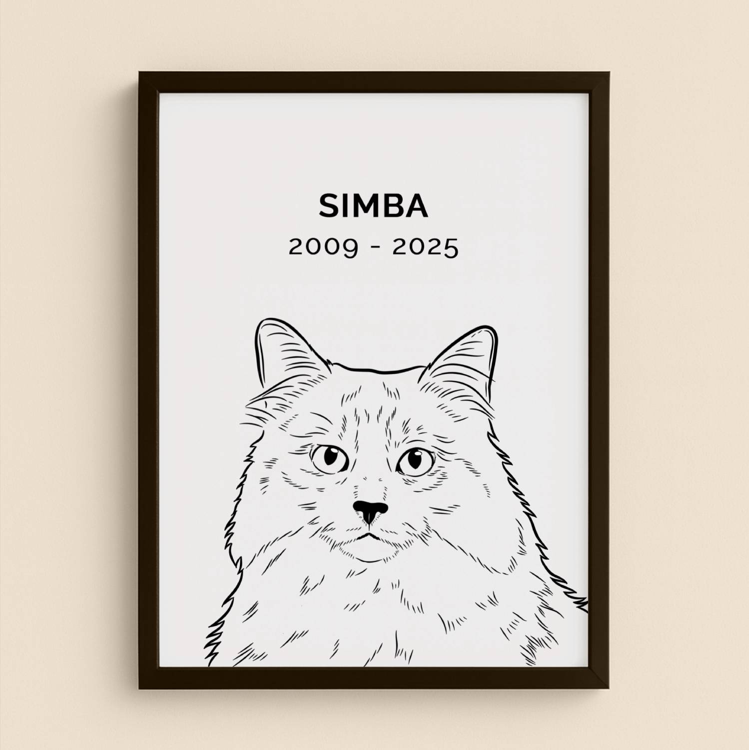 Een stijlvol en minimalistisch lijnportret, met zorg digitaal getekend. Deze ingetogen stijl legt de essentie van jouw dier vast en maakt er een tijdloos herinneringsportret van.